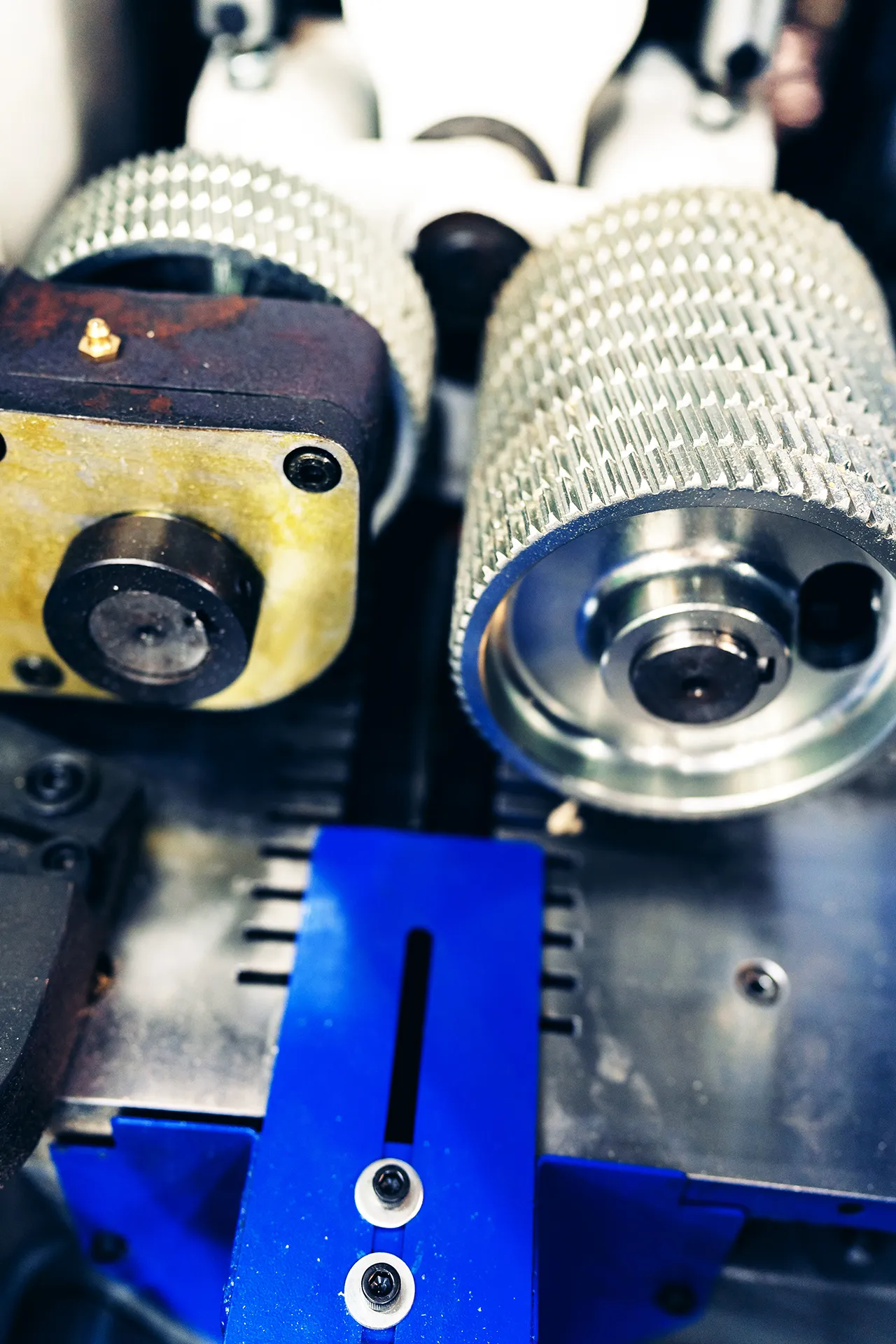 - Рифлёные входные ролики обеспечивают надёжный захват, а обрезиненные выходные — бережную подачу без повреждения поверхности.