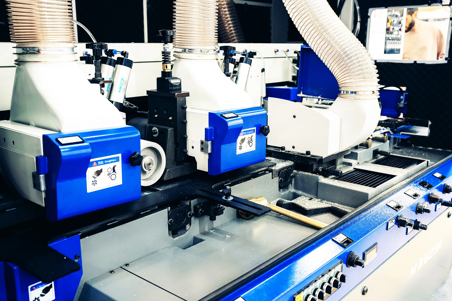 - Некоторые шпиндели выполнены с сервоприводом и работают на частоте 8 500 об/мин — оптимальны для обработки сложных рельефных поверхностей и твёрдых пород дерева. (Конкретная конфигурация - количество и положение сервошпинделей, уточняется при заказе.)