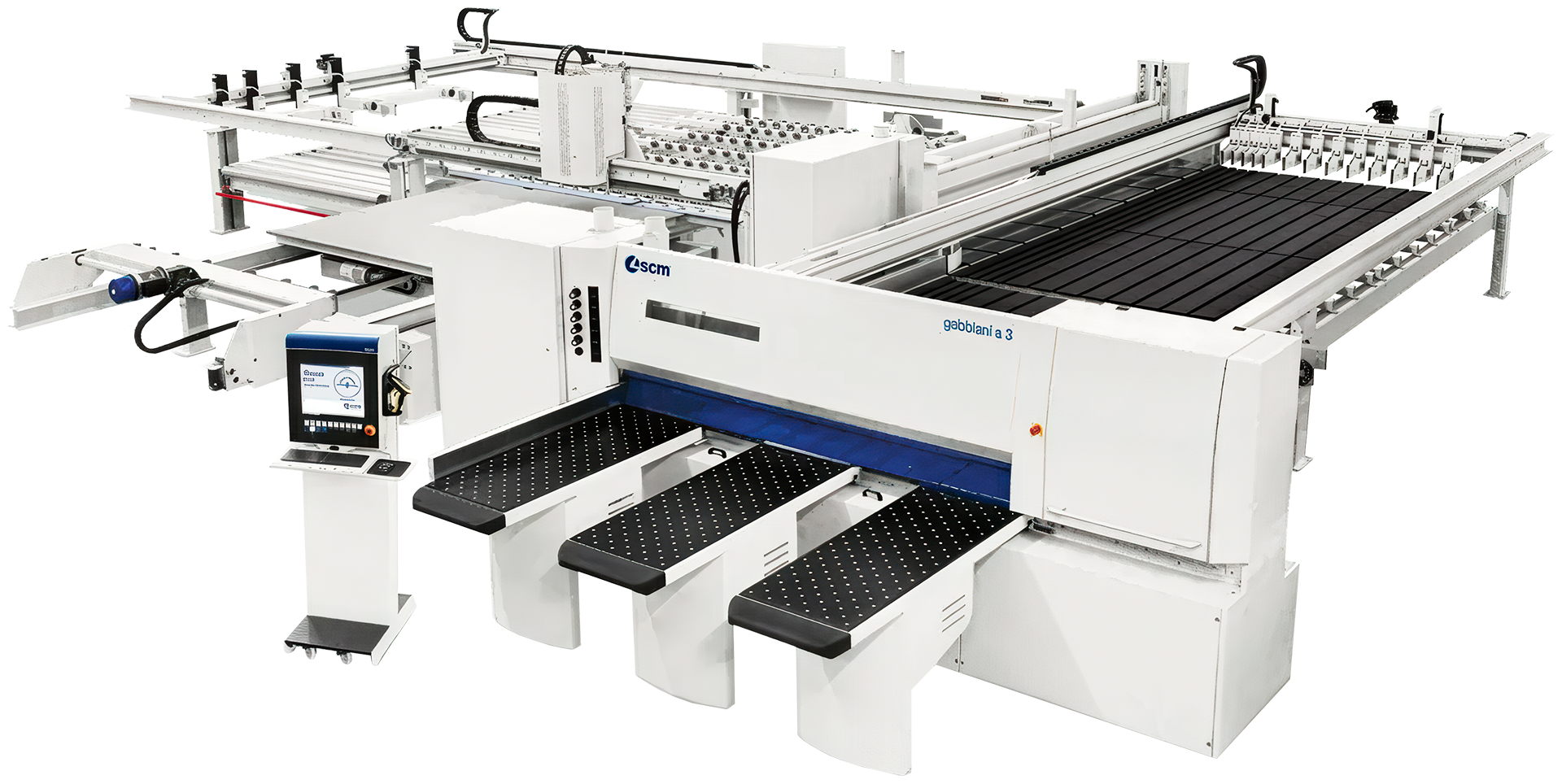 Линейка угловых раскроечных центров Gabbiani А3 предназначена для продольного и поперечного раскроя различных листовых материалов как в одиночку, так и пакетным способом. Она подходит для средних и больших предприятий и может быть объединена с погрузочно-разгрузочными системами для обеспечения высокой производительности.