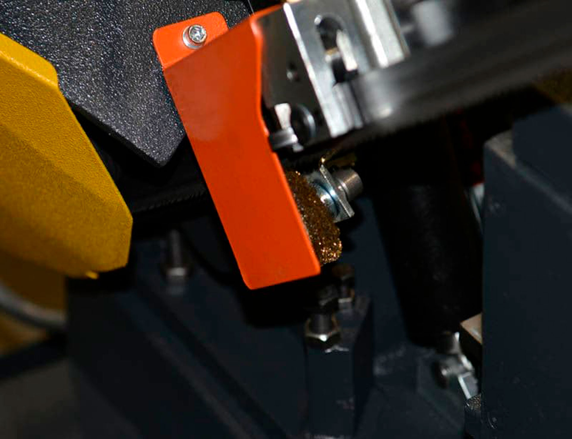 - Щётка автоматической очистки удаляет стружку с полотна — снижает износ и предотвращает перегрев.