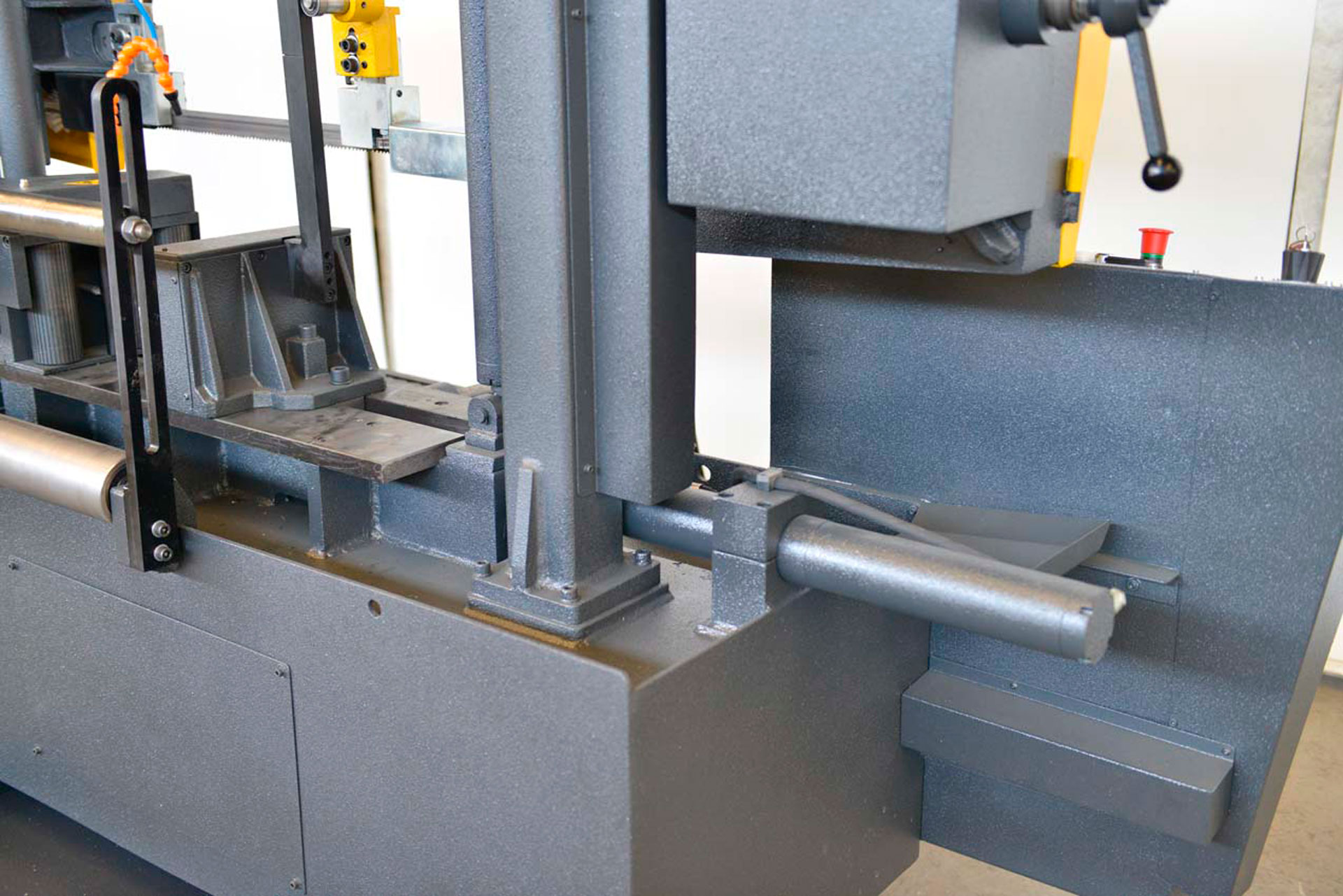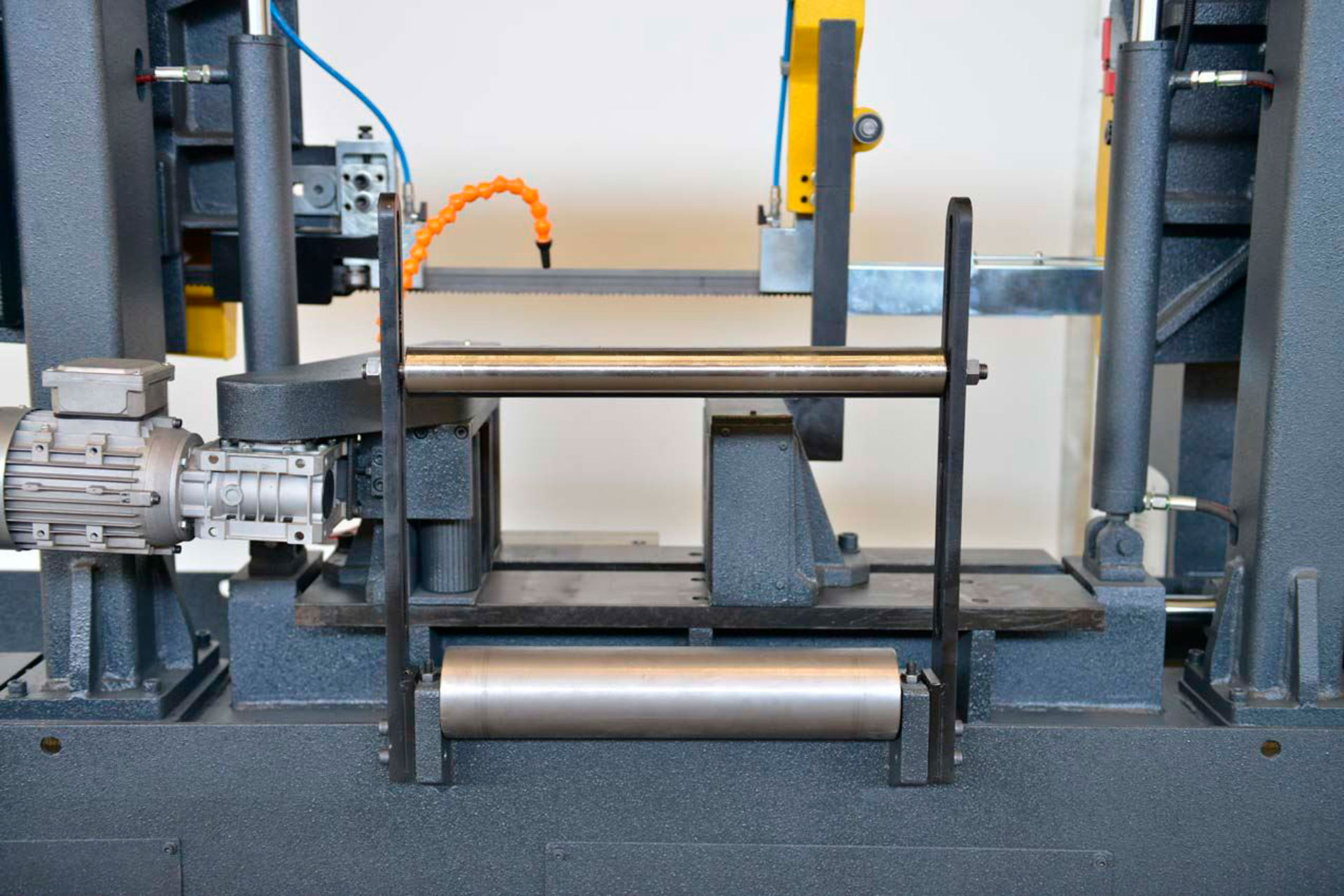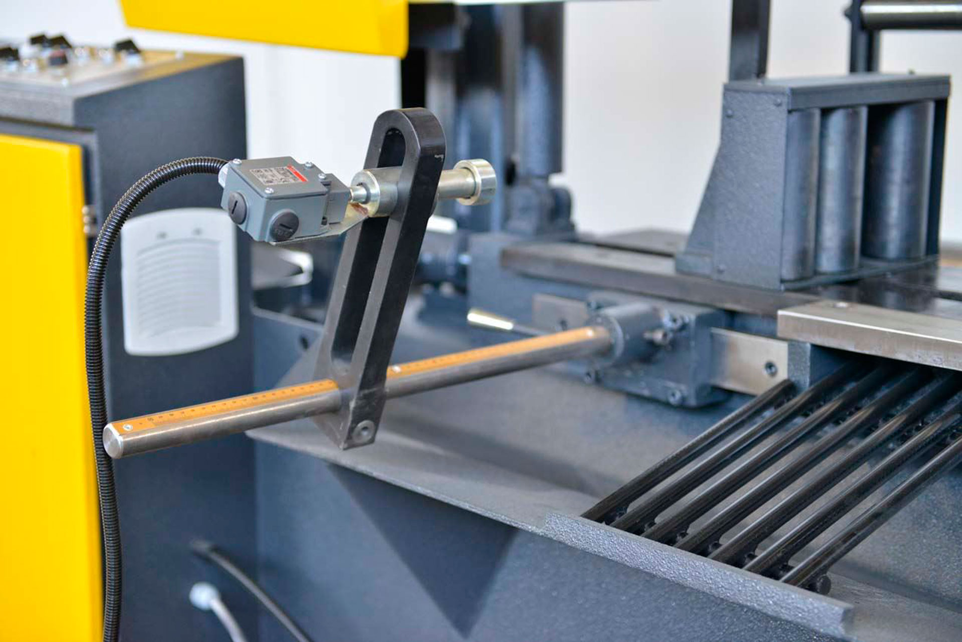 - Роликовые подающие тиски с электрическим концевиком — точная подача заготовки по заданной длине.