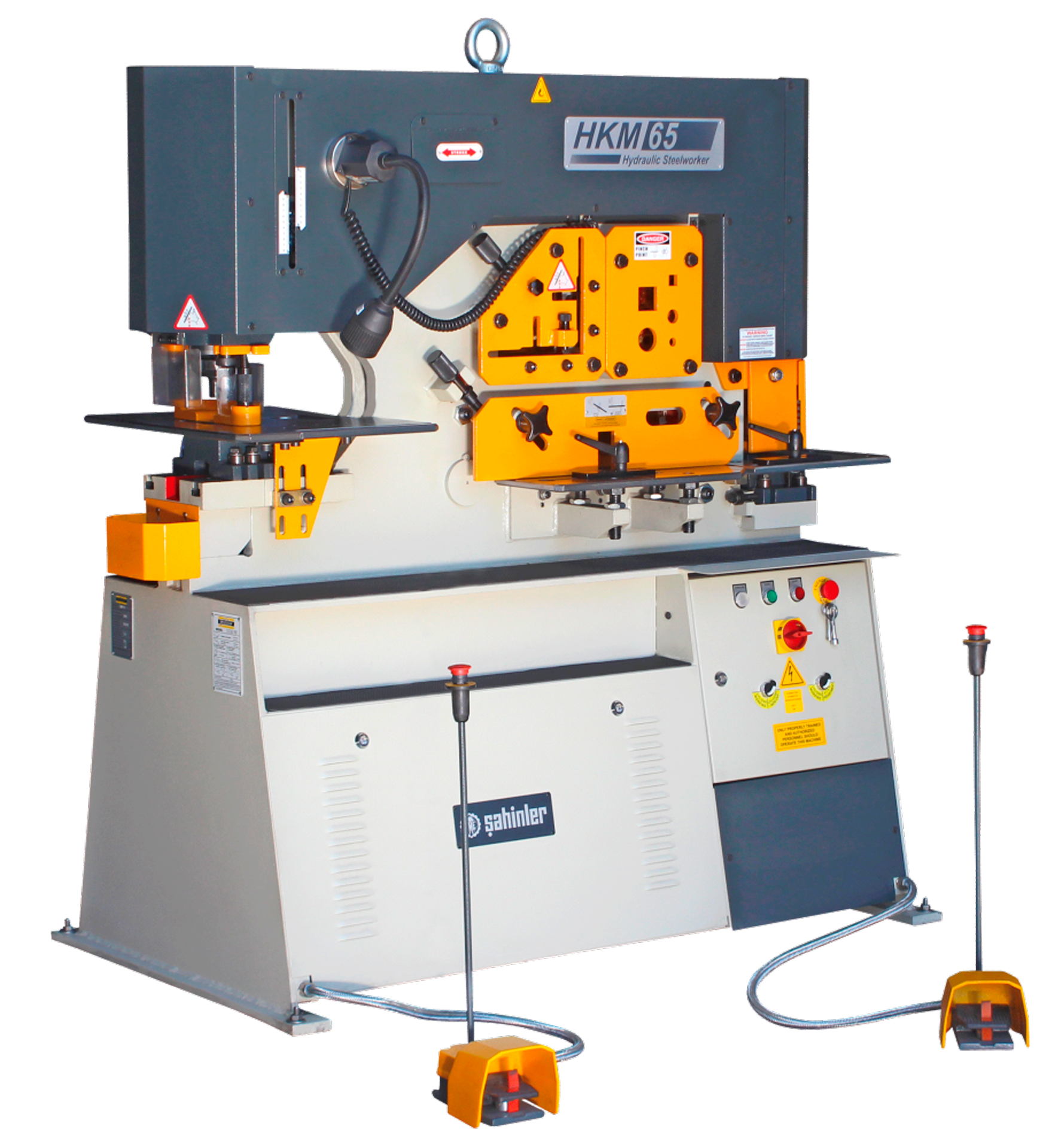 Пресс-ножницы комбинированные HKM 65 - это универсальное гидравлическое оборудование, объединяющее пять технологических операций в одном корпусе: пробивку отверстий, резку прутка и уголка, гильотинную рубку листа и вырубку пазов. Станок рассчитан на интенсивную работу в условиях серийного производства и способен обрабатывать широкий спектр металлопроката — от тонких листов до мощных уголков и двутавров. Благодаря двум гидроцилиндрам и двум педалям управления, HKM 65 допускает одновременную работу двух операторов, что значительно повышает производительность.