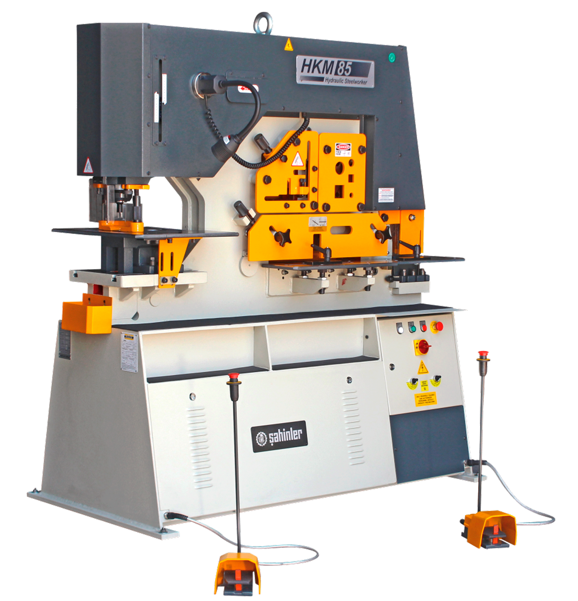 Пресс-ножницы комбинированные HKM 85 - это мощное и многофункциональное гидравлическое оборудование, объединяющее пять технологических операций в одном станке: пробивку отверстий, резку прутка и уголка, гильотинную рубку листа и вырубку пазов. Благодаря двум гидроцилиндрам и двум педалям управления, станок обеспечивает высокую производительность и допускает одновременную работу двух операторов. HKM 85 предназначен для предприятий, выполняющих интенсивные задачи по обработке сортового и фасонного проката, включая толстые листы, уголки, швеллеры и двутавры.