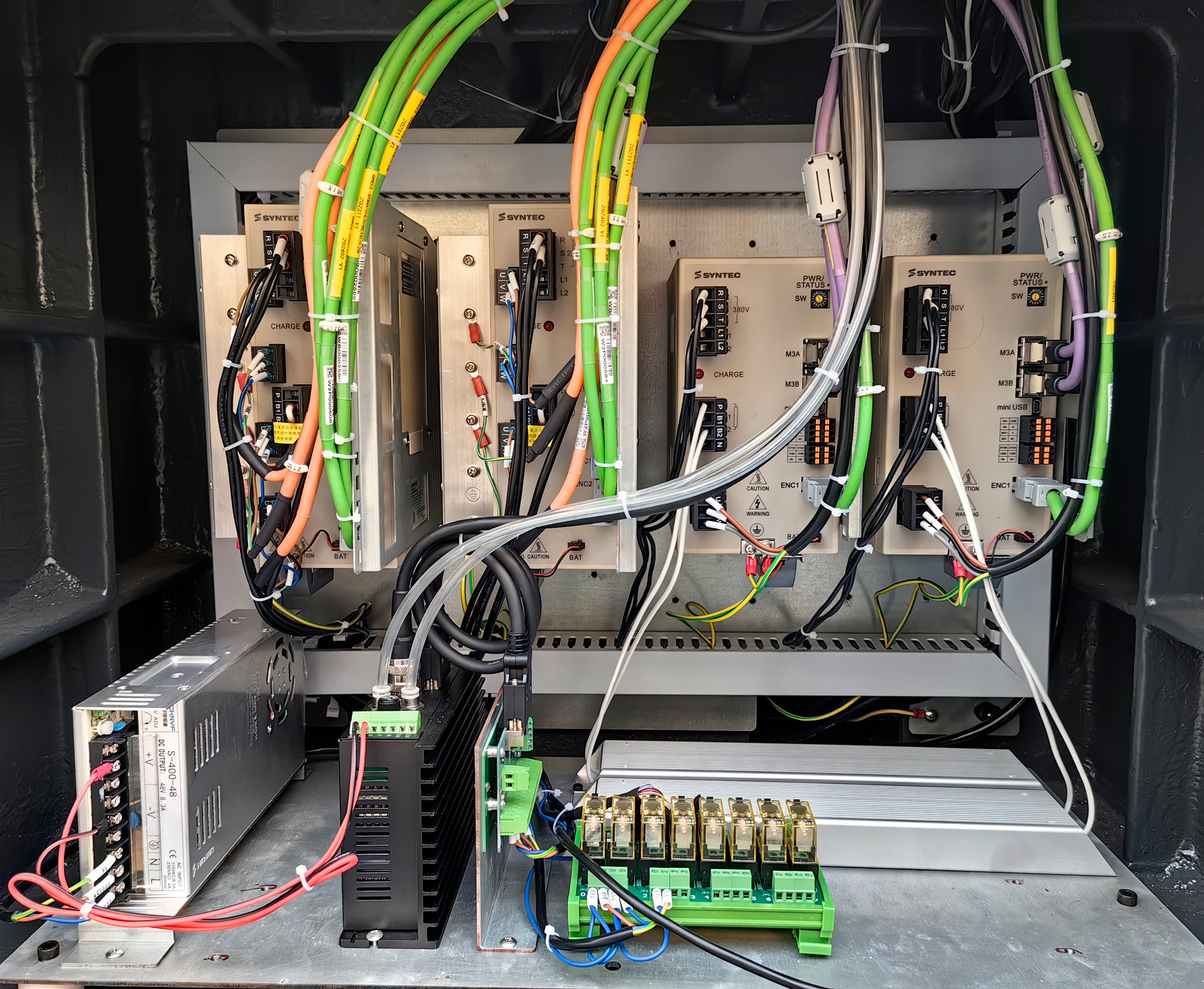 - Сервоприводы SYNTEC (0,75 кВт для X1/Y1/Z1/X2, 0,4 кВт для Y2).