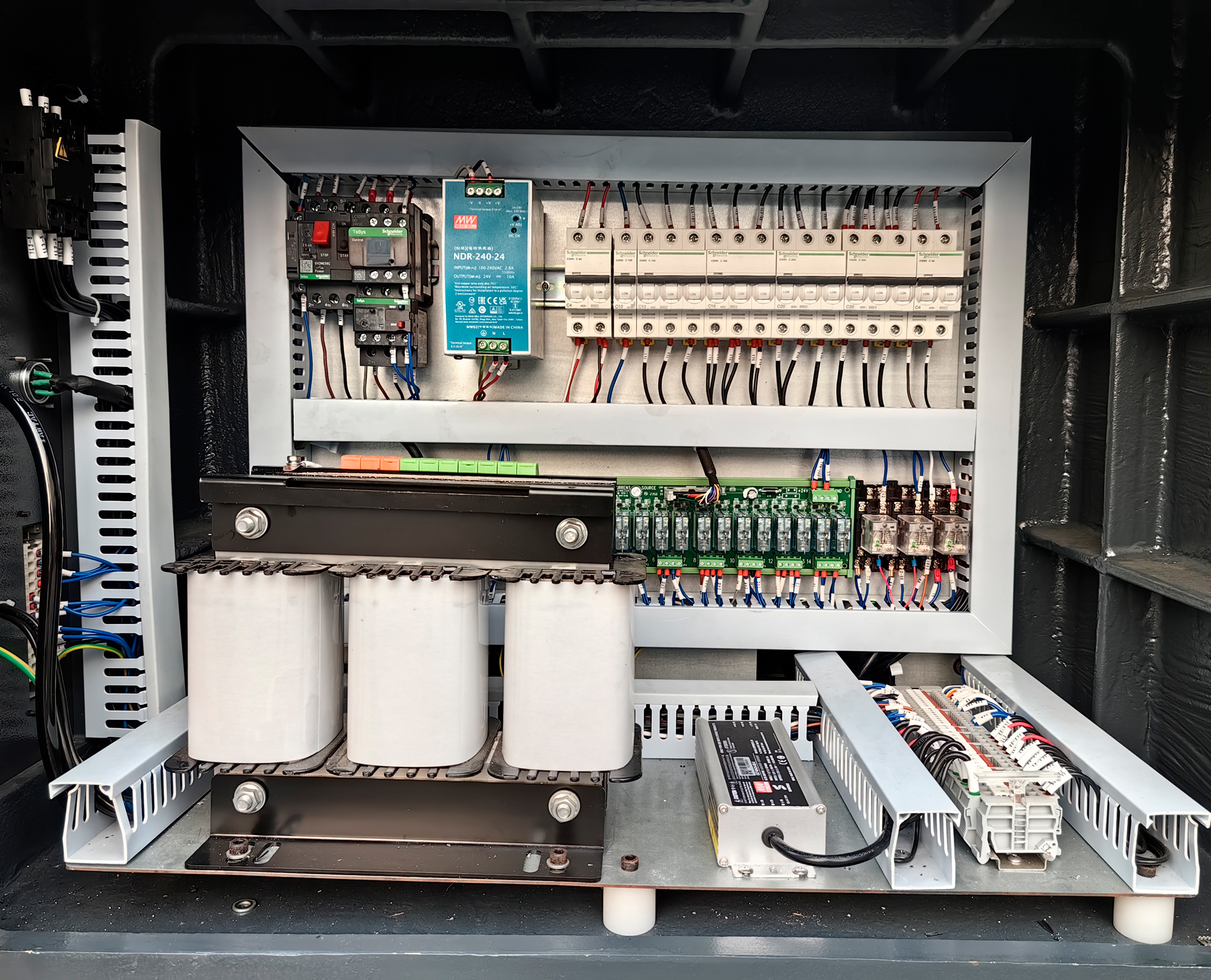 - Электропитание: 3-фазное, 380 В, 50 Гц, общая мощность 6 кВА.