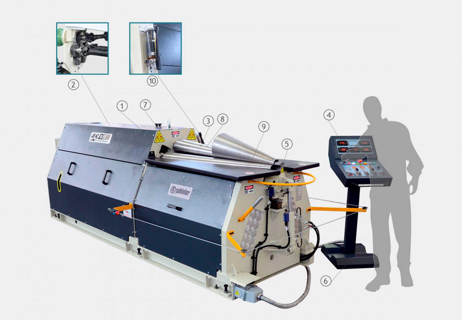| Четырёхвалковая компоновка | Обеспечивает возможность конической гибки без дополнительной оснастки. |