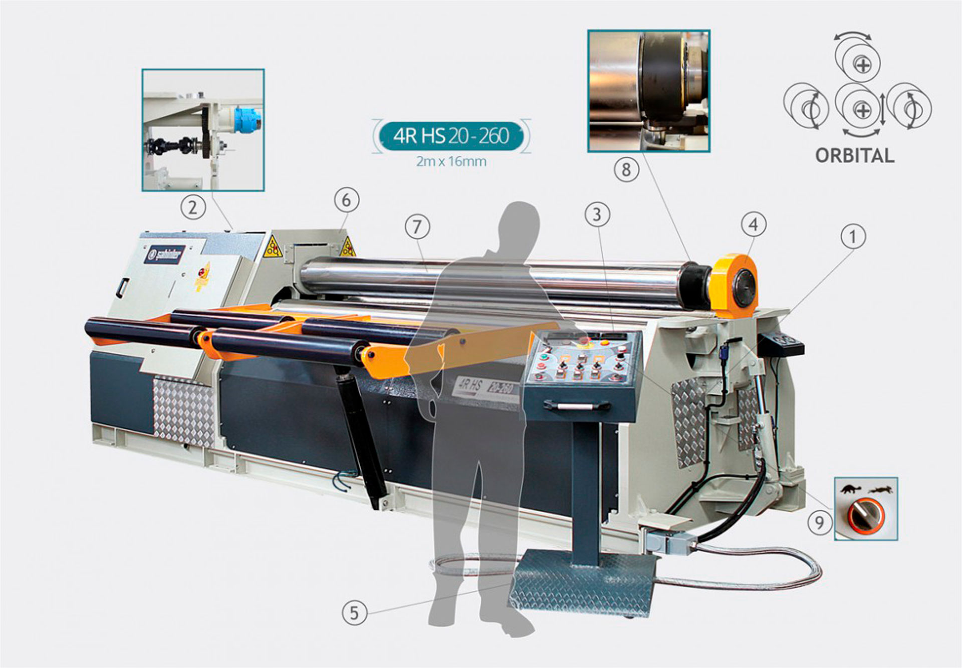 Четырехвалковые гидравлические листогибы SAHINLER серии 4R HS предназначены для гибки листов средней толщины при производстве обжимных креплений в автоматическом рабочем цикле как с использованием различных систем ЧПУ, так и без них. Также они подходят для изготовления деталей переменного радиуса.