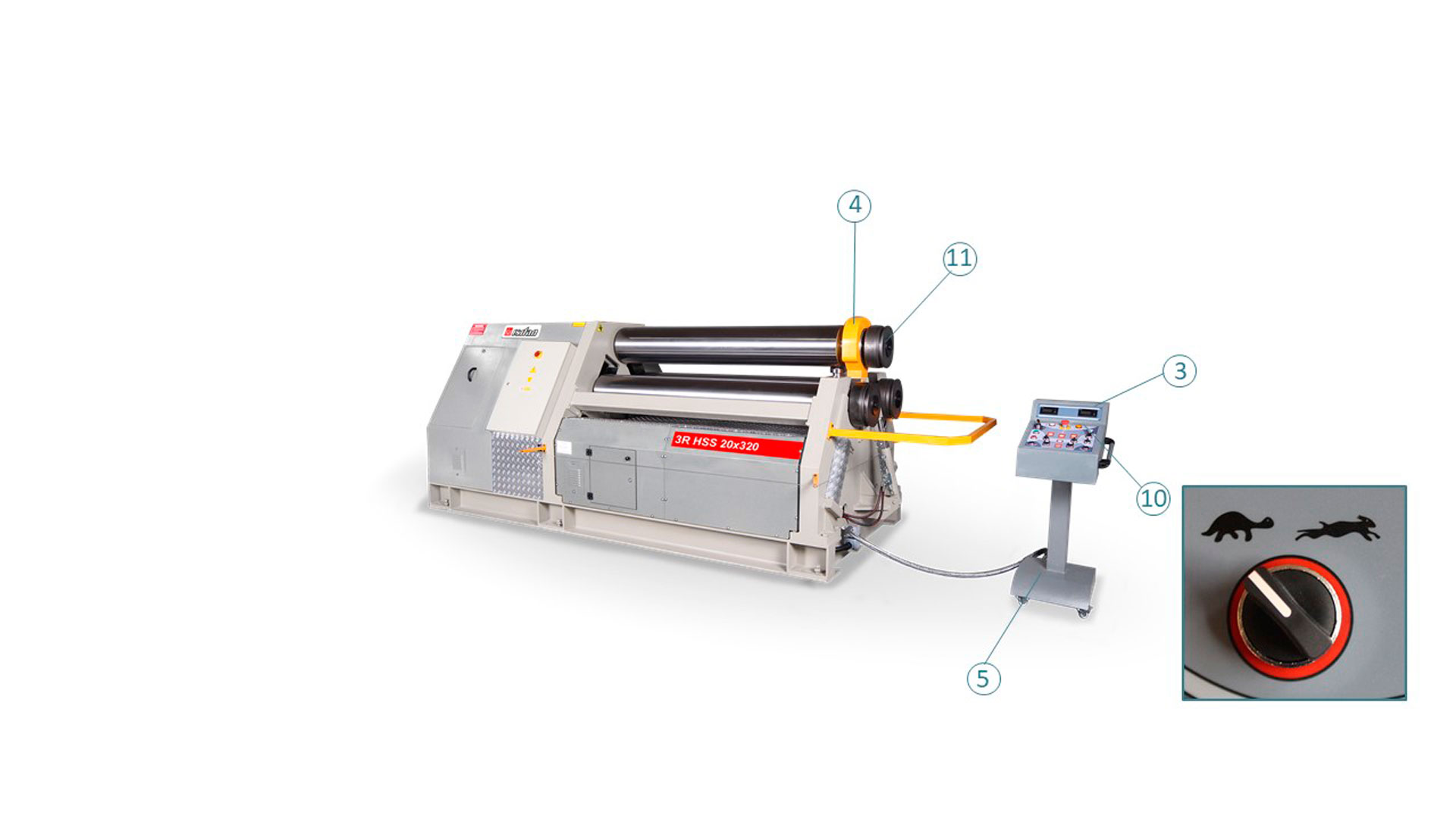 - Переносная панель управления упрощает контроль процесса — оператор всегда видит зону гибки.