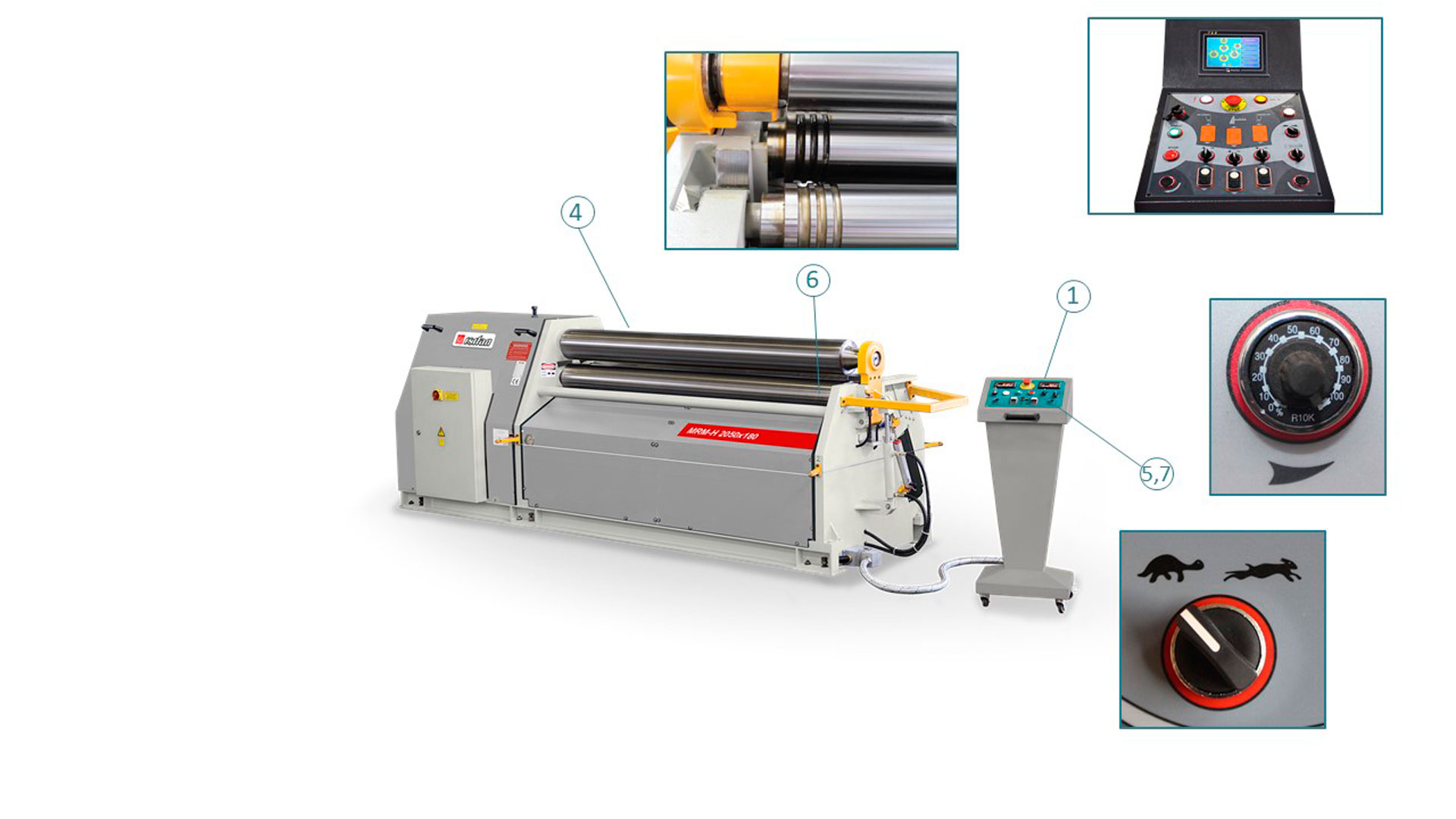 - Стабильный радиус гибки за счёт синхронного перемещения боковых валков.